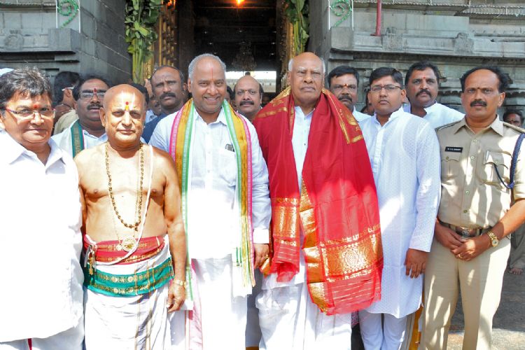 After dharshan of lord, Joint Executive Officer Sri K.S.Sreenivasa Raju has presented Sri Vari Prasadam, Srivari Photo and calendar, the veda pundits of the temple have blessed him with Vedic Hymns at Ranganayakula Mandapam.