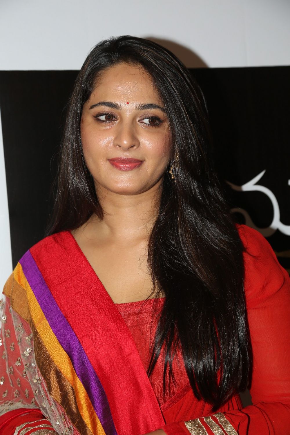 Anushka looks beautiful in Red at Rudramadevi teaser launch