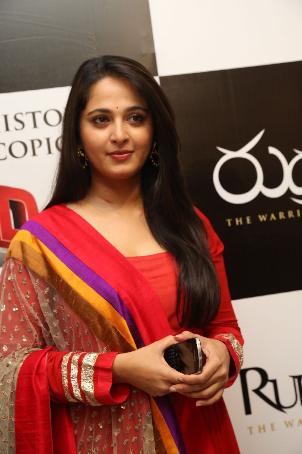 Anushka looks beautiful in Red at Rudramadevi teaser launch