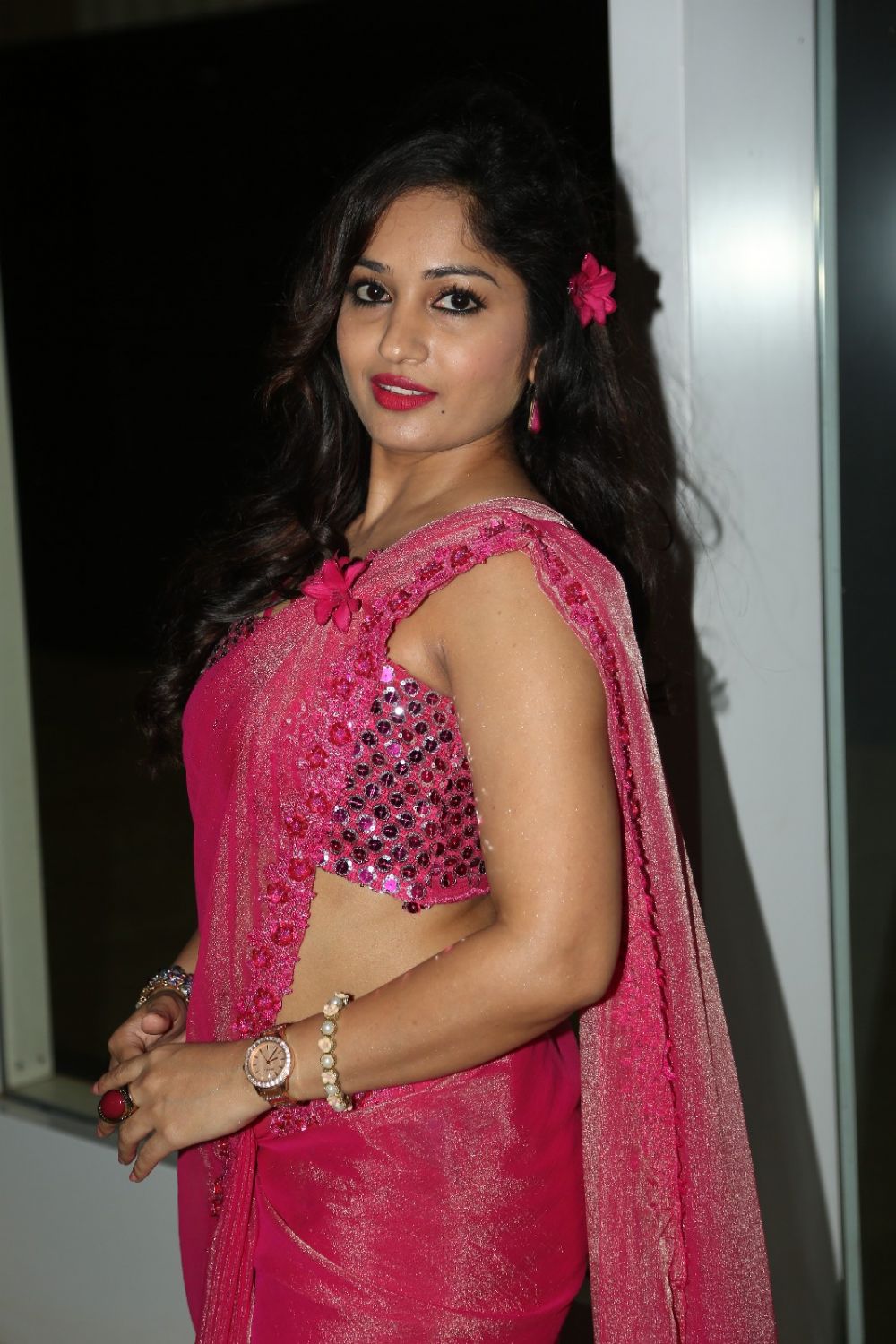 Nacchavule fame Madhavi Latha hot stills in Saree