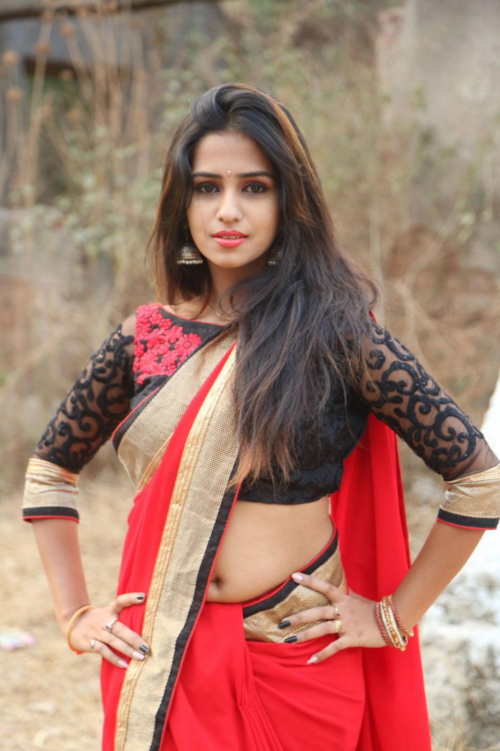 Upcoming actress Parvati looks hot in Red saree.