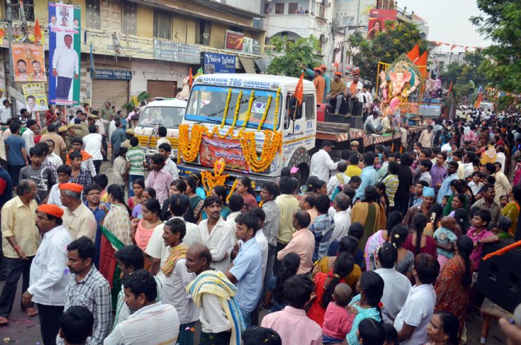 A massive Ganesh idol leading the procession of Ganesh Nimajjanam which began from Charminar to Husain Sager on Wednesday.