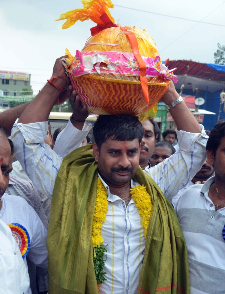 A massive Ganesh idol leading the procession of Ganesh Nimajjanam which began from Charminar to Husain Sager on Wednesday.