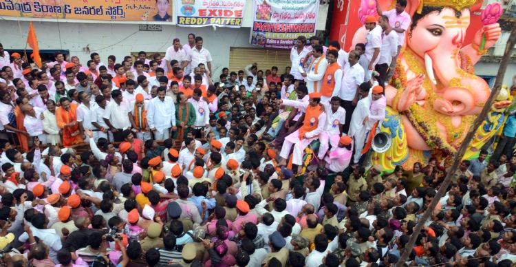 A massive Ganesh idol leading the procession of Ganesh Nimajjanam which began from Charminar to Husain Sager on Wednesday.