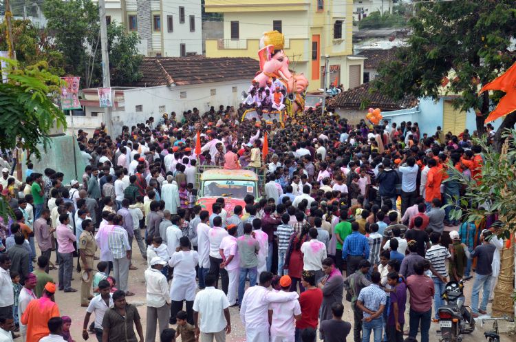 A massive Ganesh idol leading the procession of Ganesh Nimajjanam which began from Charminar to Husain Sager on Wednesday.