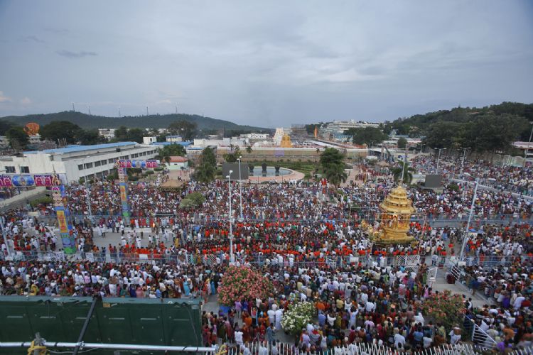 The richness, majesty and grandeur of Lord Malyappa Swamy is clearly exhibited on the glittering golden chariot procession Radharanga Dolotsavam on 8th October 2016.