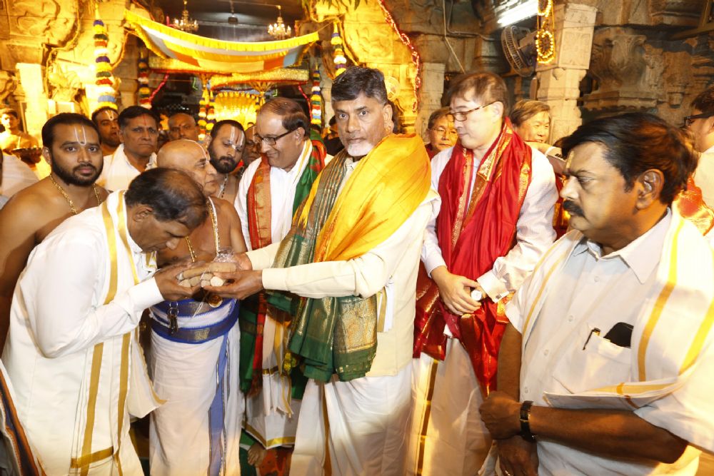 Chief Minister of Andhra Pradesh N Chandra Babu Naidu had darshan of Lord Venkateswara along with a team of delegates from Singapore including the Singaporean Minister S.Iswaran in Tirumala on Tuesday evening.