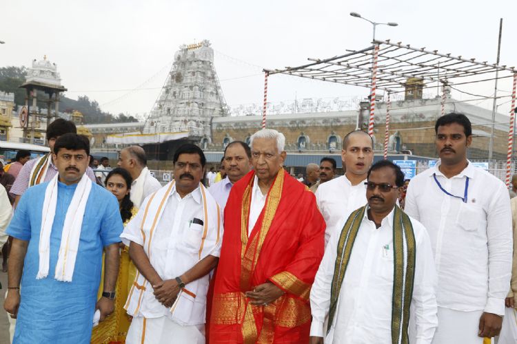 Governor of Karnataka Sri Vajubhai Rudabhai Vala accompanied by family members, offered prayers to Lord Venkateswara inside Srivari temple on Thursday morning in Tirumala.