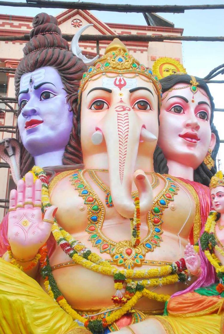 A massive Ganesh idol leading the procession of Ganesh Nimajjanam which began from Charminar to Husain Sager on Wednesday.