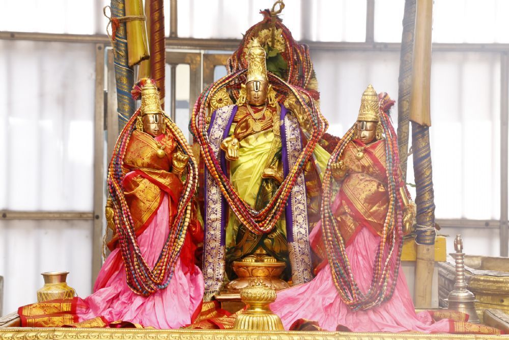 After establishing the Pavitra Pratishtha in a religious way on the first day of Pavithrotsavam, the presiding and processional deities were offered with Pavitralu on second day in Tirumala temple on Wednesday.