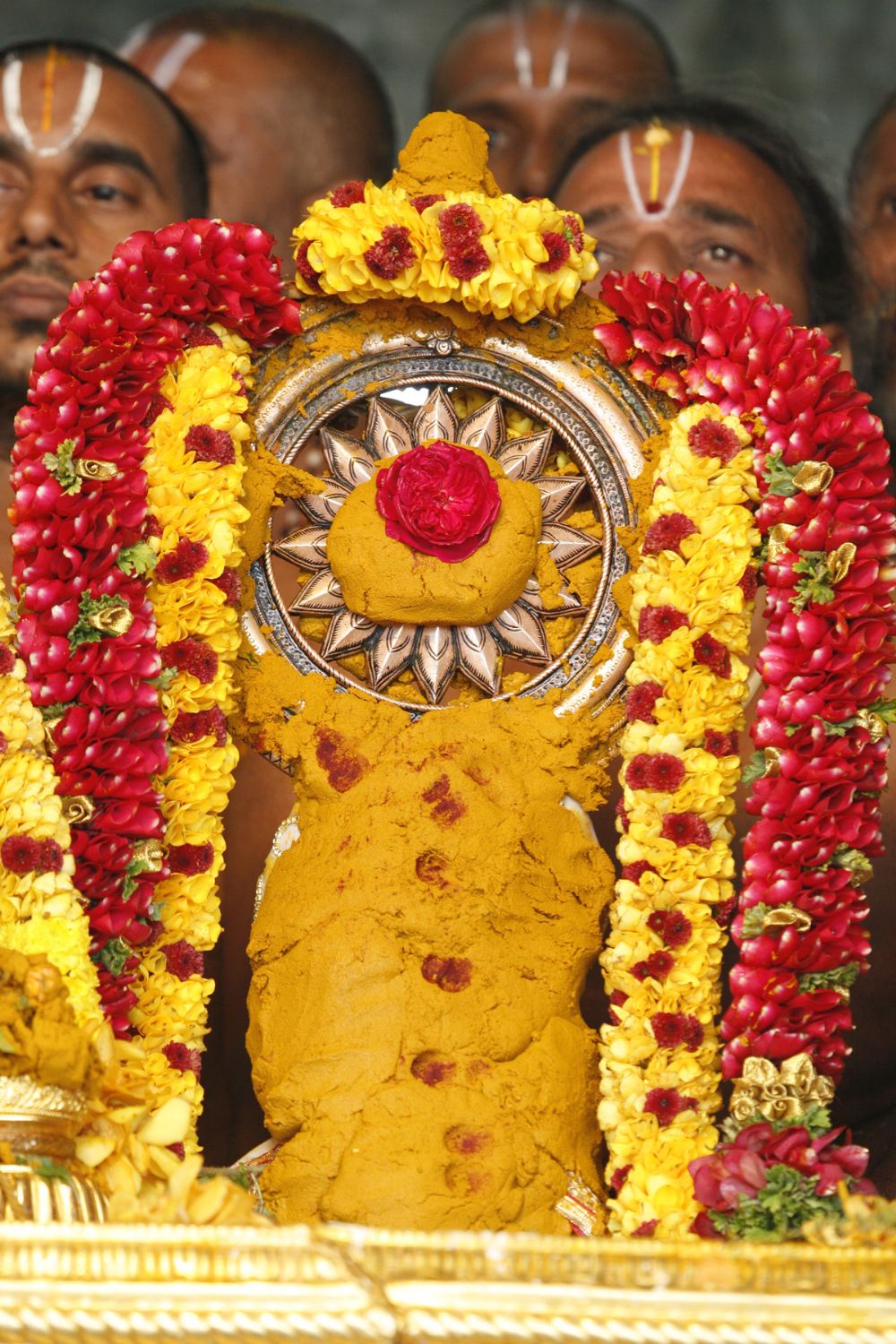 On the ninth day of annual brahmotsavams of Padmavati Devi the serene waters of the Padmasarovaram at Tiruchanoor turned into a sea of humanity on Thursday with lakhs of pilgrims having holy bath on the occasion of Panchami Theertham.