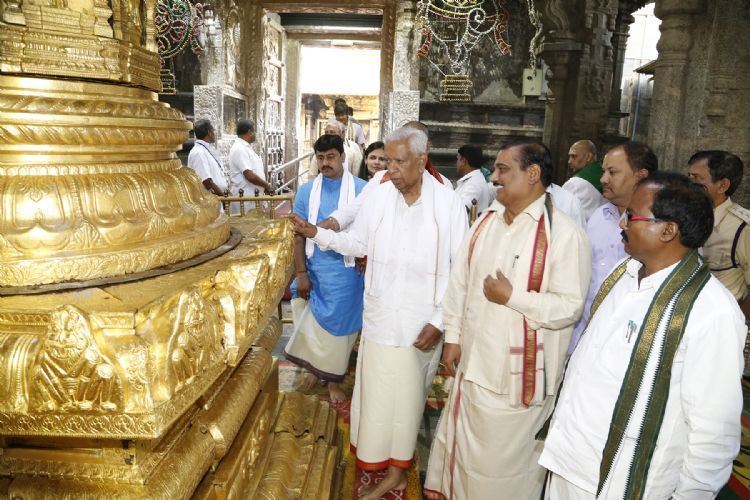 Governor of Karnataka Sri Vajubhai Rudabhai Vala accompanied by family members, offered prayers to Lord Venkateswara inside Srivari temple on Thursday morning in Tirumala.