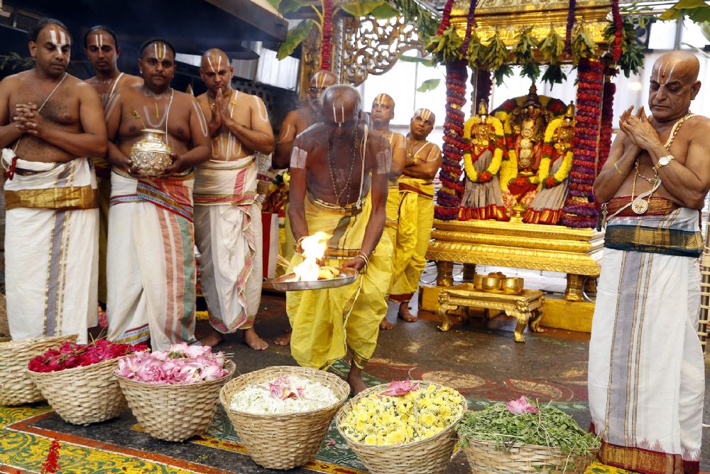 Enchanting fragrance spread all over the premises of Sampangi Prakaram, where the festival of flowers-Pushpayagam took place in ceremonial way in Tirumala on Friday. Traditional flowers including sampangi, maruvam, davanam, chamanthi, roses, kaluva etc. were blessed to have touched the deities amidst chanting of vedic hymns.