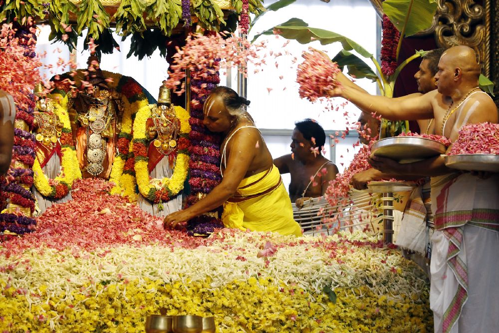 Enchanting fragrance spread all over the premises of Sampangi Prakaram, where the festival of flowers-Pushpayagam took place in ceremonial way in Tirumala on Friday. Traditional flowers including sampangi, maruvam, davanam, chamanthi, roses, kaluva etc. were blessed to have touched the deities amidst chanting of vedic hymns.