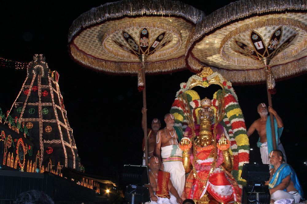 The Pournami Karthika Masa Garuda Seva performed at Tirumala has gathered huge reception among the devotees and pilgrims, as tens of thousands of pilgrims converge to witness the procession of Lord Malayappa Swamy in the four-mada streets.