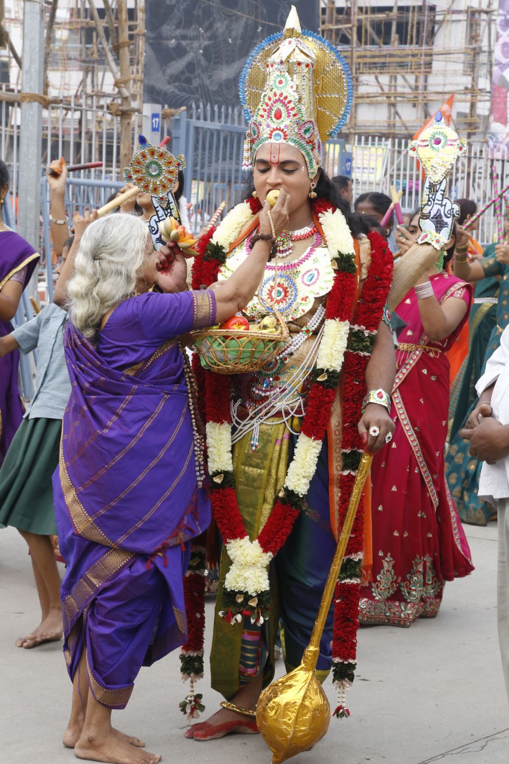 On the third day of the annual Karthika Brahmotsavams, the processional deity of goddess Padmavathi Devi, in the guise of “Kaliya Mardhani” was taken around the four-mada streets of Tiruchanur temple. On the first day the goddess has taken a celestial ride on Chinna Sesha Vahanam and on the second day goddess blessed the devotees on Pedda Sesha Vahanam.