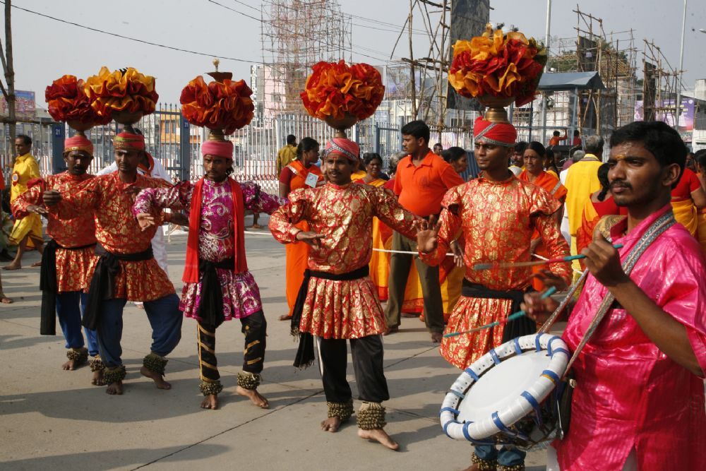 On the third day of the annual Karthika Brahmotsavams, the processional deity of goddess Padmavathi Devi, in the guise of “Kaliya Mardhani” was taken around the four-mada streets of Tiruchanur temple. On the first day the goddess has taken a celestial ride on Chinna Sesha Vahanam and on the second day goddess blessed the devotees on Pedda Sesha Vahanam.