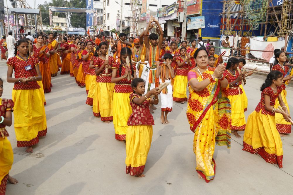 Goddess Padmavathi Devi dressed up as "Utla Krishna" went around the four-mada streets of the temple town on the ‘Sarva Bhupala Vahanam’. The attire resembled Lord Krishna, with flute in one hand and other hand trying to hit the mud pots filled with butter.