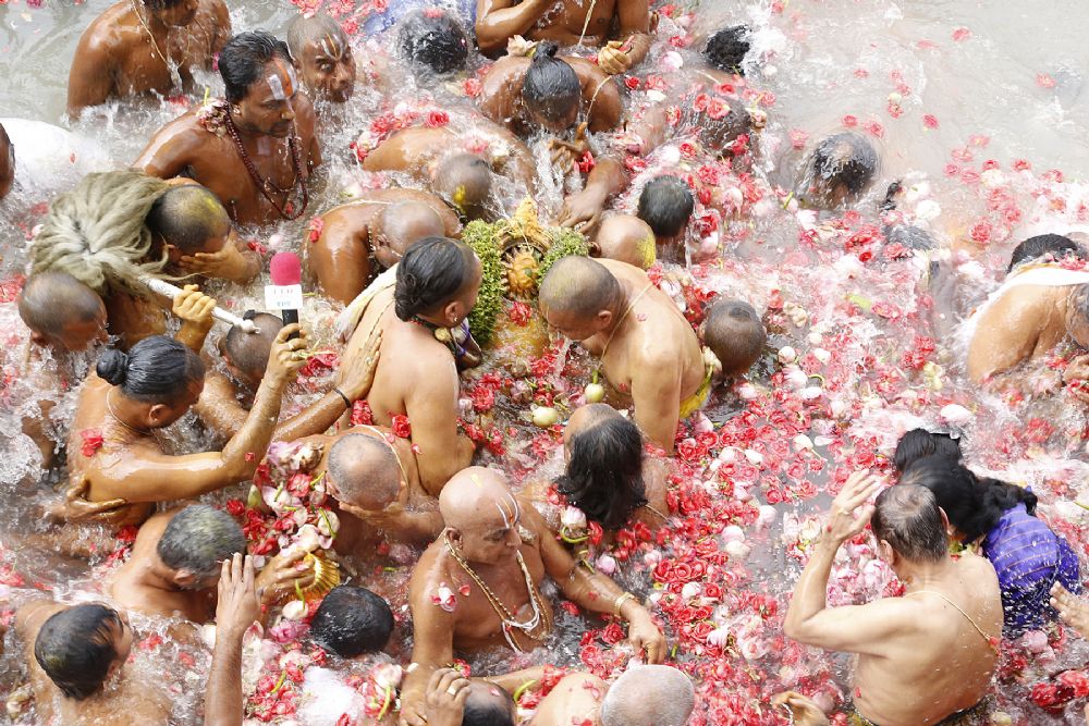 On the ninth day of annual brahmotsavams of Padmavati Devi the serene waters of the Padmasarovaram at Tiruchanoor turned into a sea of humanity on Thursday with lakhs of pilgrims having holy bath on the occasion of Panchami Theertham.