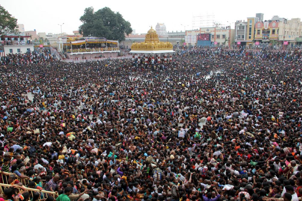 On the ninth day of annual brahmotsavams of Padmavati Devi the serene waters of the Padmasarovaram at Tiruchanoor turned into a sea of humanity on Thursday with lakhs of pilgrims having holy bath on the occasion of Panchami Theertham.