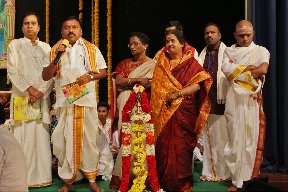 On the occasion of 168th Aradhanotsavam of Saint musician Sri Tyagaraja Swamy, TTD has paid a tribute to the divine composer by organising Carnatic musical fiesta at Mahati auditorium on Saturday in Tirupati. 108 artistes rendered Sri Tyagaraja Pancharatna Kritis on the occasion.