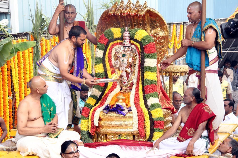 In connection with Radhasapthami at Tirumala, Processionaly deity of Lord Malayyappaswamy is taken out in a procession atop Chinna Sesha vahanam around four mada streets on Monday.