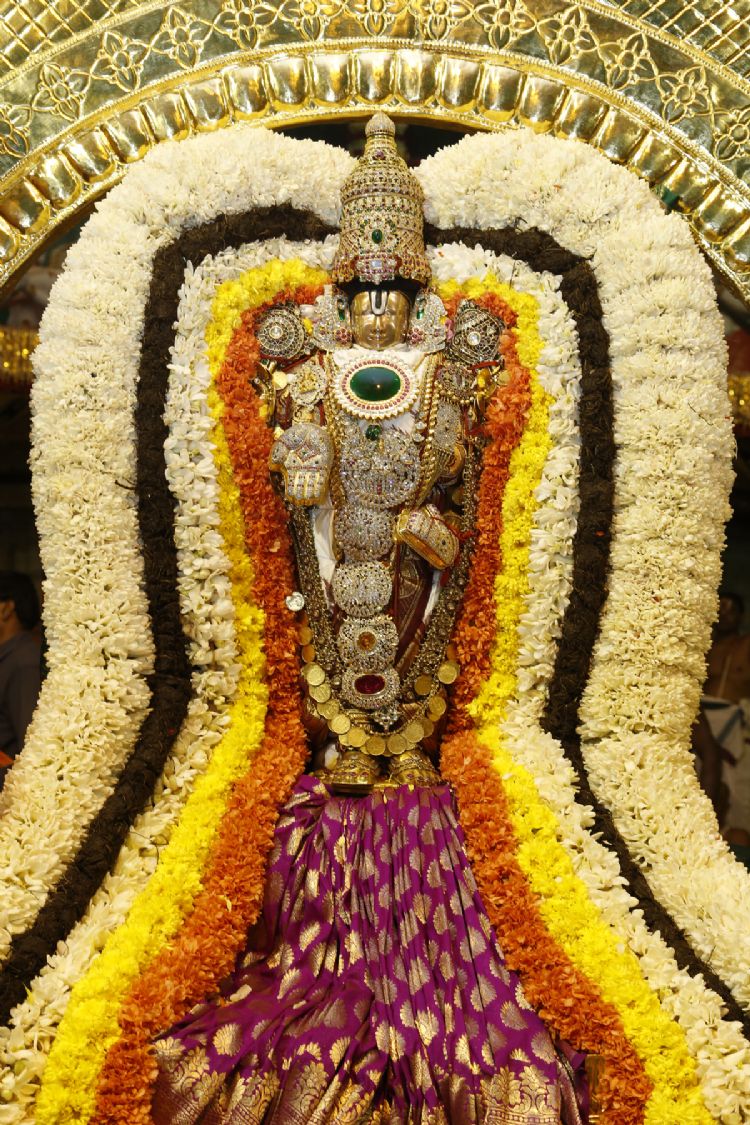 The processional deity of Lord Malayappaswamy along with his consorts were taken out in procession around four mada streets on Chandraprabha Vahanam in connection with Radhasapthami at Tirumala on Monday evening.