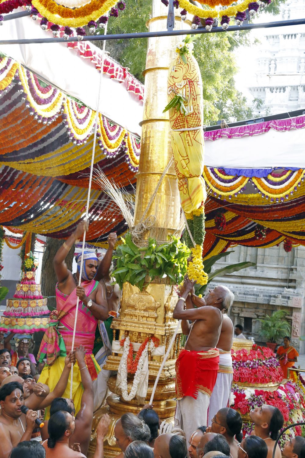 The nine-day annual Brahmotsavams of the TTD-run Lord Kalyana Venkateswara temple began on a colourful note with Dhwajarohanam on Tuesday at Srinivasa Mangapuram. Religious fervour marked the occasion as residents of the nearby villages thronged the shrine in large numbers.