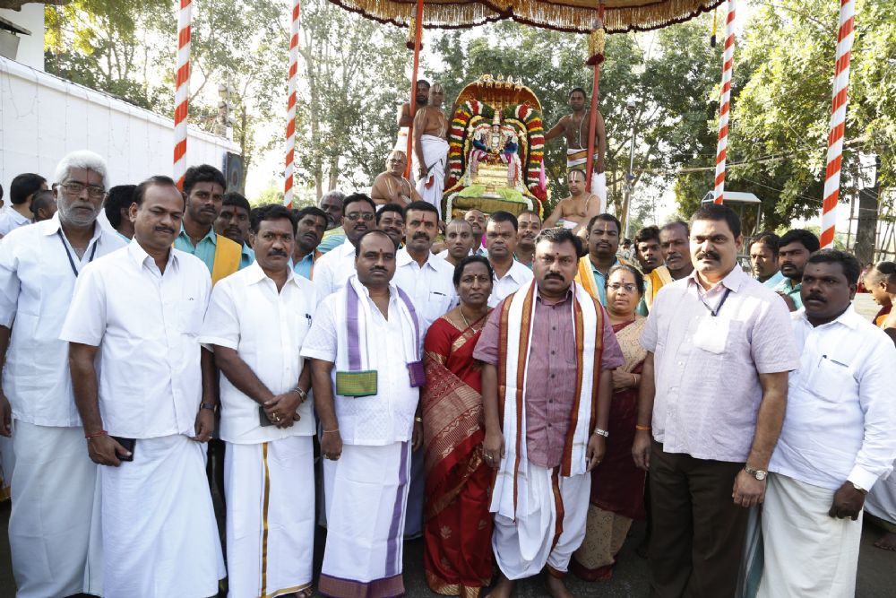 On the sunny morning of the on-going annual Brahmotsavams of Lord Kalyana Venkateswara in Tirupati the processional deity of Lord Malayappa Swamy was taken out in a grand procession on ‘Chinna Sesha Vahanam' around the mada streets encircling the holy shrine.
