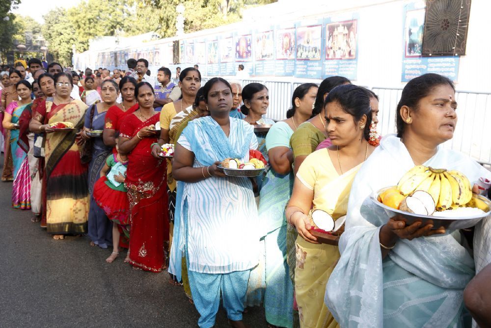 On the fourth day of Kalyana Venkateswara Swamy Temple Brahmotsavam in Tirupati, Lord Venkateswara along with his consorts being the boon giver takes ride on Kalpa Vruksha to bless his devotees.