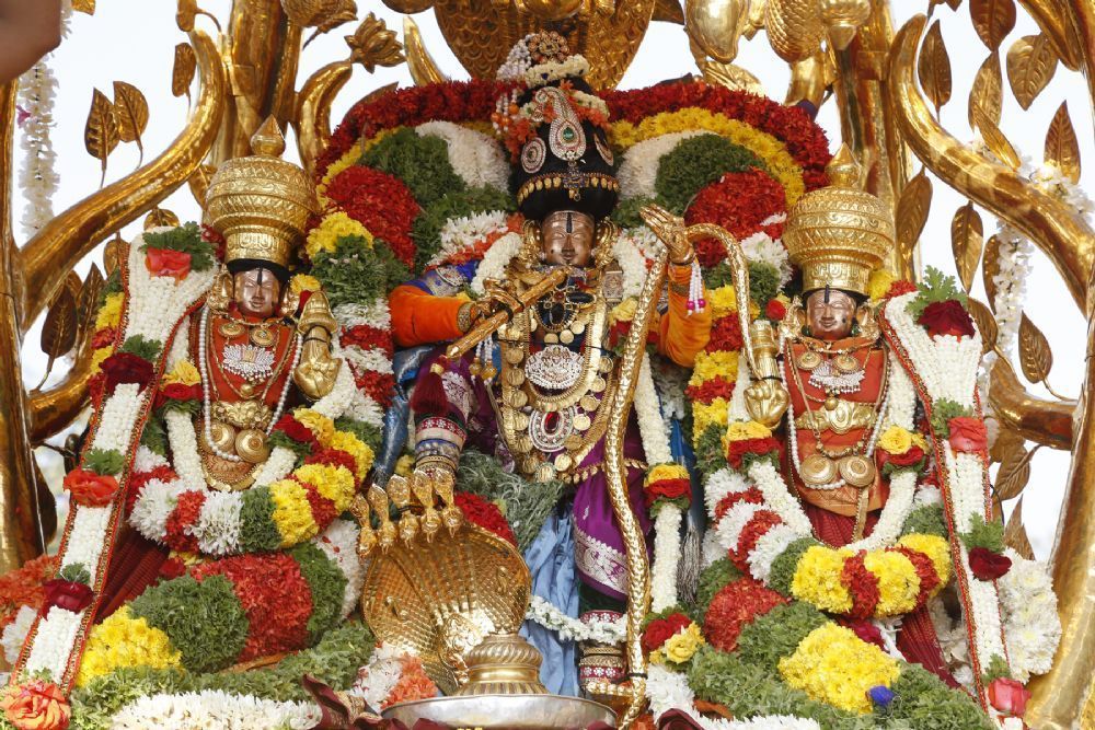 On the fourth day of Kalyana Venkateswara Swamy Temple Brahmotsavam in Tirupati, Lord Venkateswara along with his consorts being the boon giver takes ride on Kalpa Vruksha to bless his devotees.