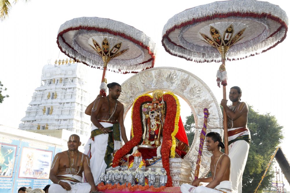 Lord Kalyana Venkateswara Swamy, in the guise of Surya Narayana Murthy took celestial ride on the dazzling Surya Prabha Vahanam on Monday, on the seventh day of ongoing annual brahmotsavams at Srinivasa Mangapuram.