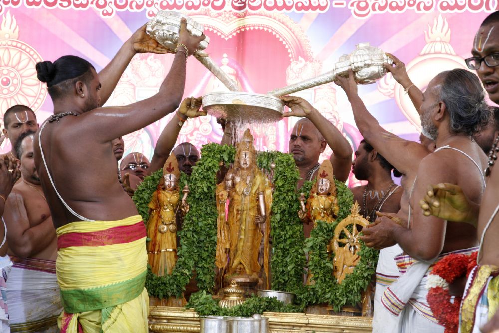 The nine day annual Brahmotsavams in Kalyana venkateswara Swamy temple in Tirupati came to a grand end with the Sudarshana Chakrattalwar being offered the ceremonious dip in the holy waters of Pushkarini on Wednesday.