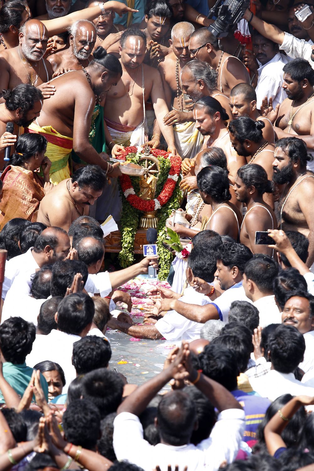 The nine day annual Brahmotsavams in Kalyana venkateswara Swamy temple in Tirupati came to a grand end with the Sudarshana Chakrattalwar being offered the ceremonious dip in the holy waters of Pushkarini on Wednesday.