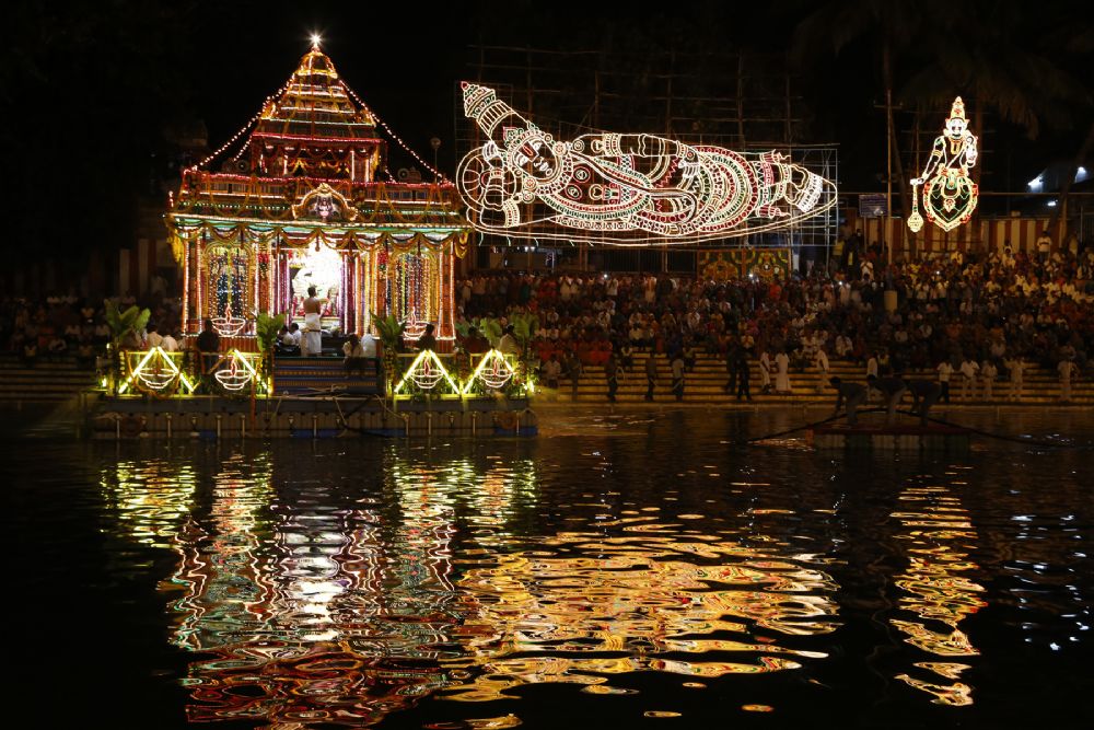 The five-day annual float festival of Teppotsavam assumed enhanced look on Tuesday evening at Malayappa swamy temple in Tirumala, as the processional deity of Lord Malyappa glided smoothly on the wave currents of Swamy Pushkarini accompanied by his two consorts on the beautifully decked float.