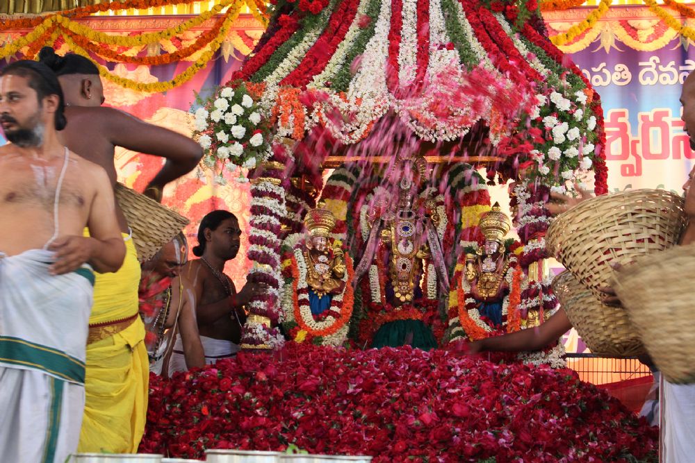 The annual festival of Pushpayagam has been performed with religious fervour in the Lord Kalyana Venakteswara Swamy temple at Srinivasa Mangapuram on Tuesday. Over seven tonnes of wide range of bright flowers are used in this festival of flowers.