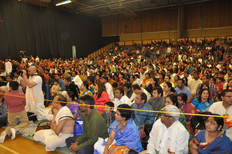 The celestial marriage to the processional deities of Lord Malayappa Swamy and His two Consorts - 'Srinivasa Kalyanam' which was performed at Belfast in London on May 18 provided a colourful feast to the eyes of thousands of devotees who converged to witness the grandeur of the divine marriage. Photo by TTD.