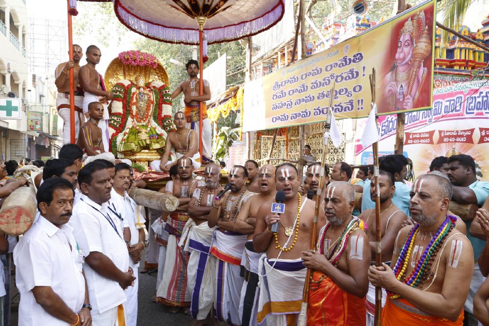 Processional deity of Lord Rama is taken out in a procession atop Chinnasesha Vahanam around four mada streets on the second day of ongoing nine day Brahmotsavams in Sri Kodanda Rama Swamy Temple, Tirupati.