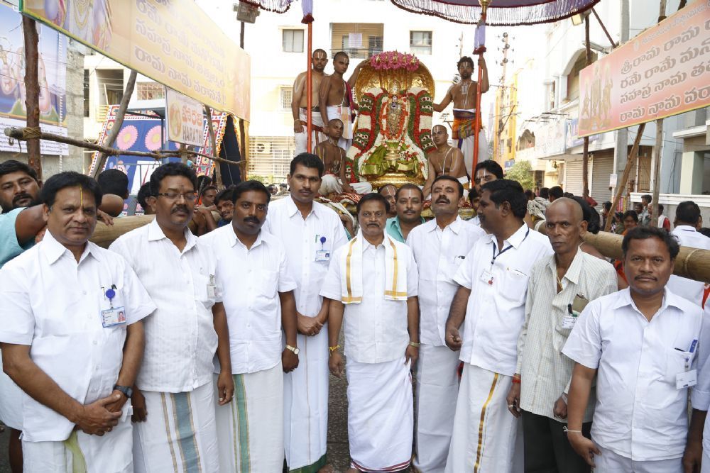 Processional deity of Lord Rama is taken out in a procession atop Chinnasesha Vahanam around four mada streets on the second day of ongoing nine day Brahmotsavams in Sri Kodanda Rama Swamy Temple, Tirupati.