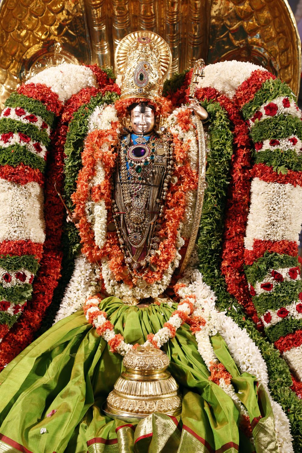 Processional deity of Lord Rama is taken out in a procession atop Chinnasesha Vahanam around four mada streets on the second day of ongoing nine day Brahmotsavams in Sri Kodanda Rama Swamy Temple, Tirupati.