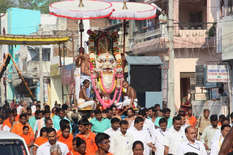 Processional deity of Lord Rama is taken out in a grand procession atop Simha Vahanam around four mada streets on the third day of the ongoing annual Brahmotsavam in Sri Kodanda Rama Swamy Temple, Tirupati on Friday morning.