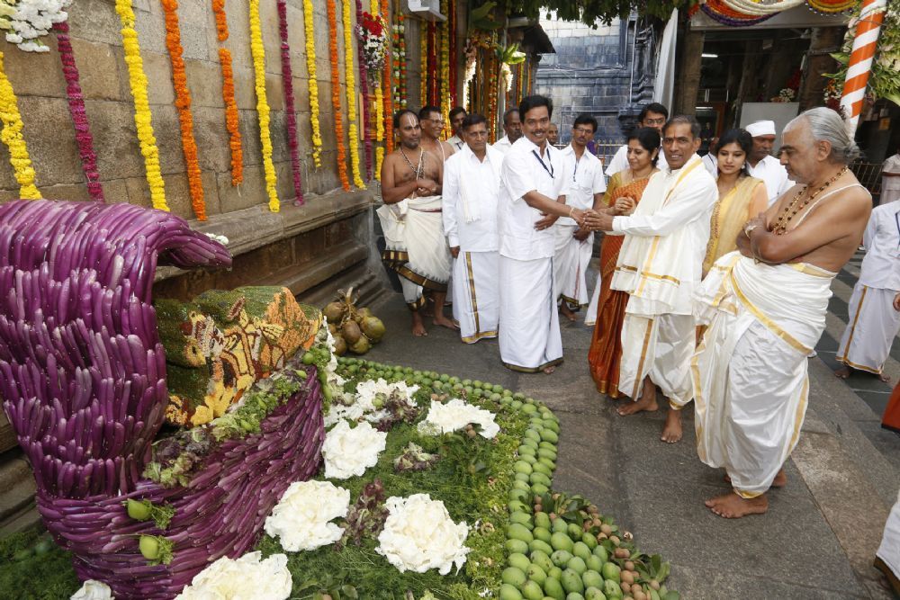 Manmadha Nama Ugadi was celebrated with religious fervour in Tirumala on Saturday. Ugadi Asthanam was performed in Bangaru Vakili of sanctum sanctorum. The floral and vegetable decorations remained a special attraction to the pilgrims.