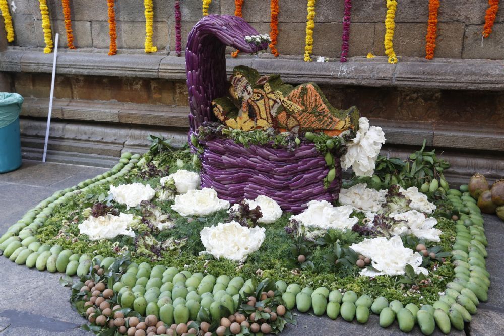Manmadha Nama Ugadi was celebrated with religious fervour in Tirumala on Saturday. Ugadi Asthanam was performed in Bangaru Vakili of sanctum sanctorum. The floral and vegetable decorations remained a special attraction to the pilgrims.