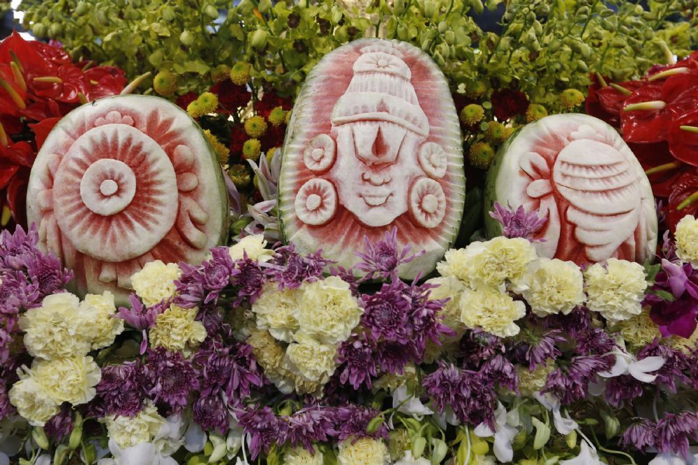 Manmadha Nama Ugadi was celebrated with religious fervour in Tirumala on Saturday. Ugadi Asthanam was performed in Bangaru Vakili of sanctum sanctorum. The floral and vegetable decorations remained a special attraction to the pilgrims.