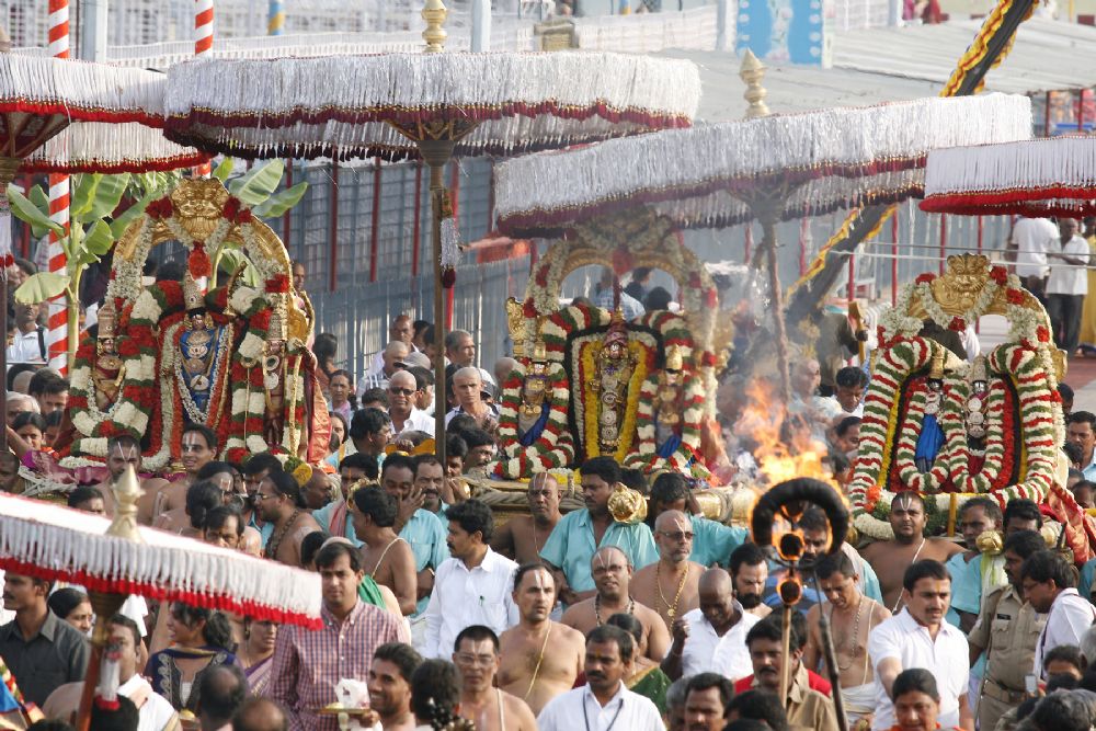 The three-day annual vasanthotsavam concluded on a grand note with the Snapana tirumanjanam performed to all the ten processional deities in Vasantha Mandapam in Tirumala.