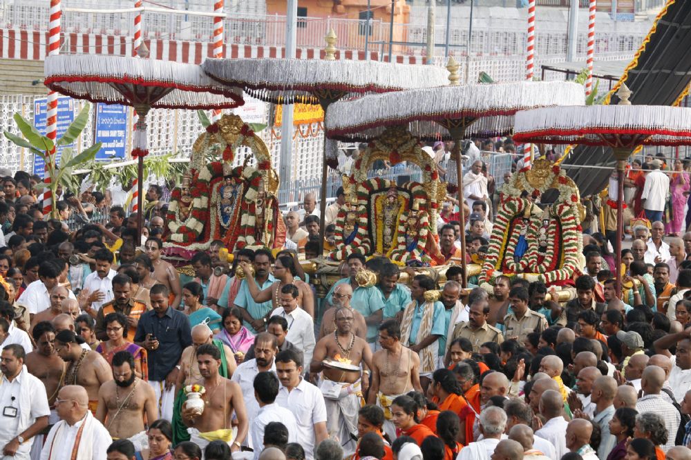 The three-day annual vasanthotsavam concluded on a grand note with the Snapana tirumanjanam performed to all the ten processional deities in Vasantha Mandapam in Tirumala.