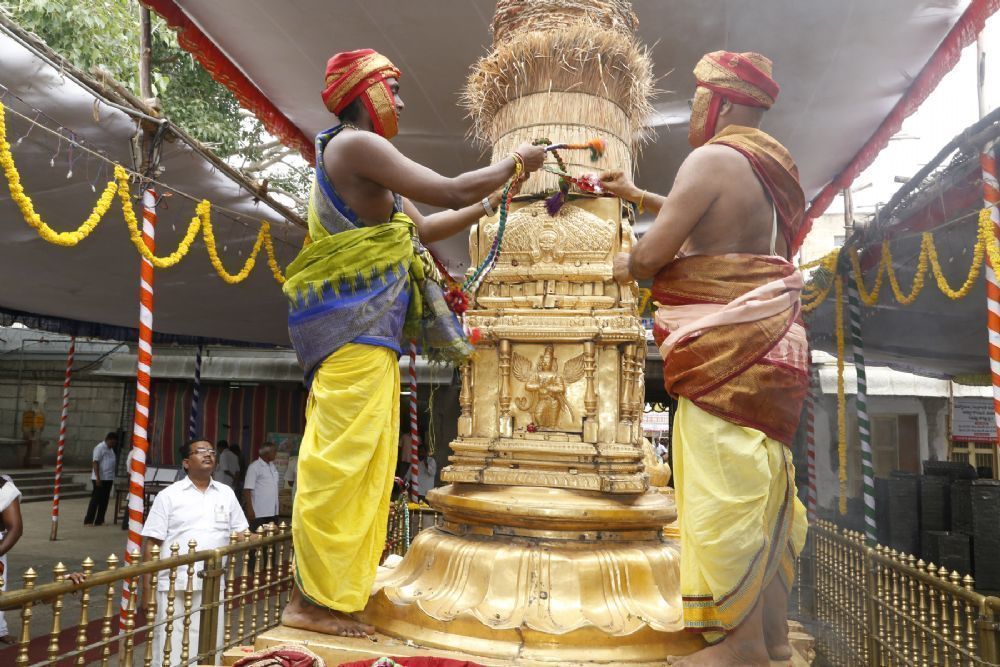 As a part of the ongoing three-day annual festival of Pavitrotsavams in Sri Kodanda Rama Swamy temple in Tirupati, the sacred Pavitra Malas have been offered to the deities on Tuesday.
