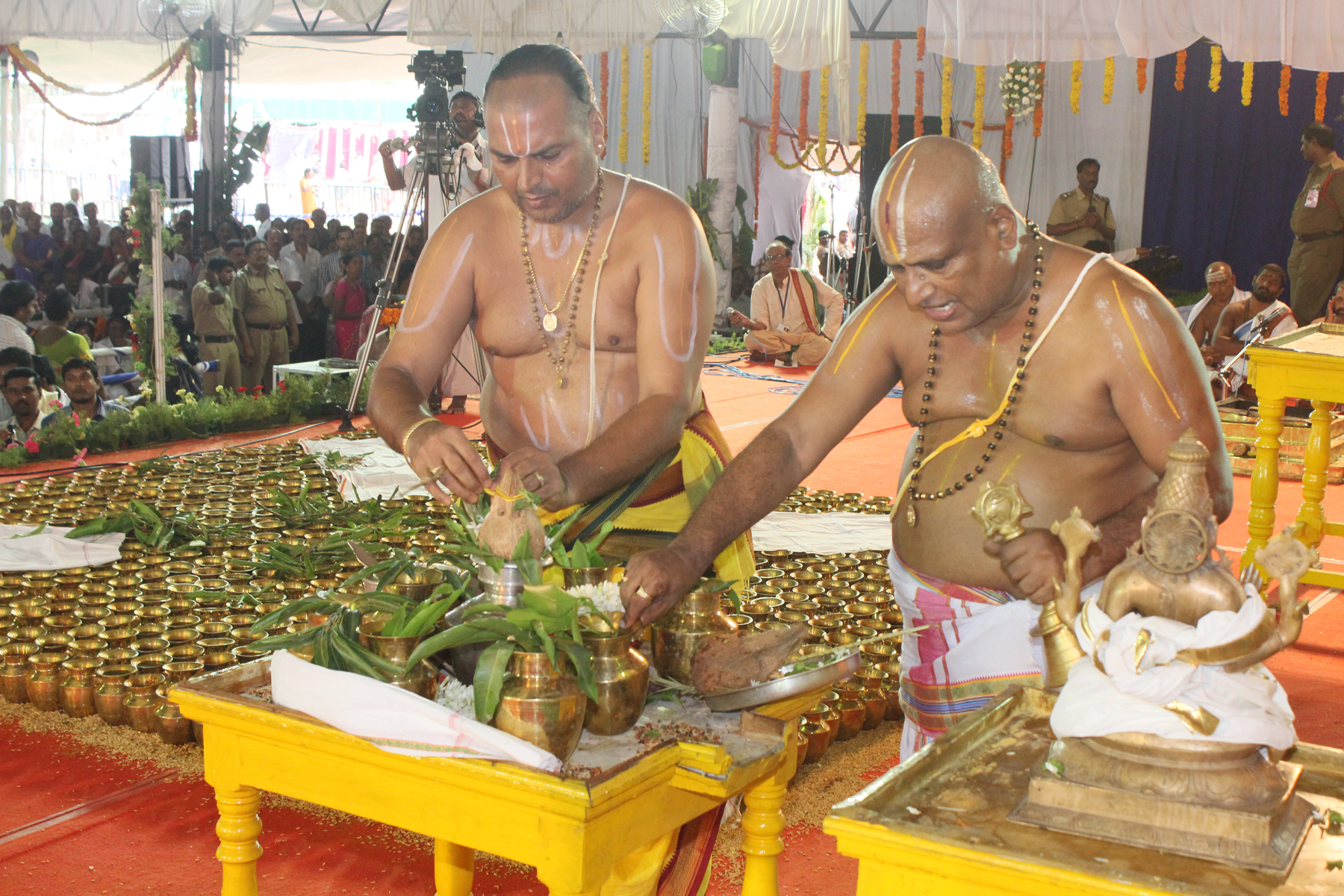 The denizens of Nellore were caught in awe after witnessing the special abhishekam that was performed to the utsava murthies as a part of the ongoing Sri Venkateswara Vaibhavotsavams in ACSR stadium here on Wednesday.