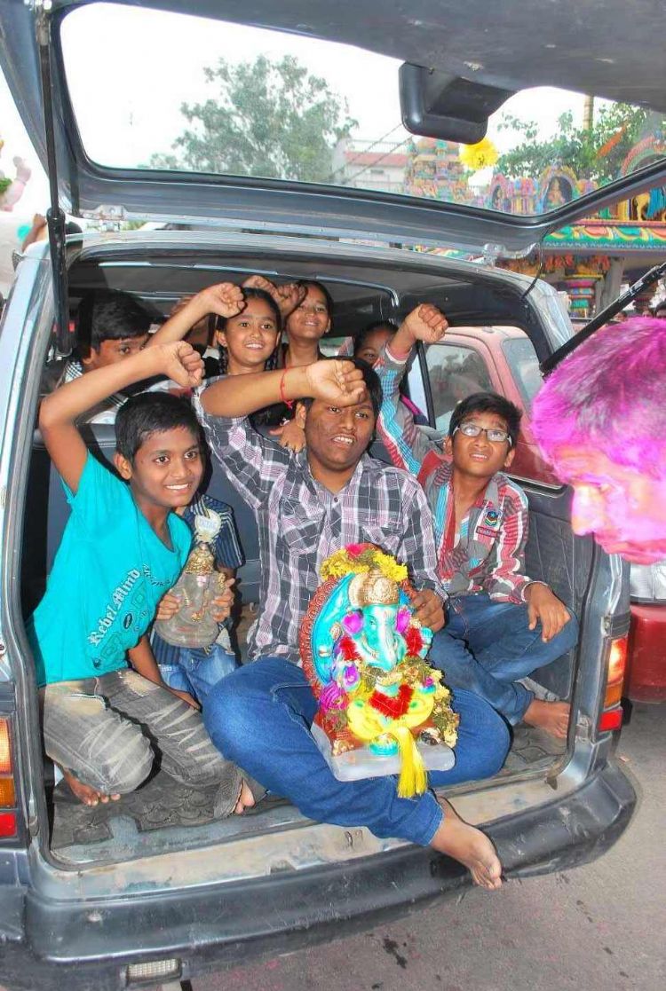 A massive Ganesh idol leading the procession of Ganesh Nimajjanam which began from Charminar to Husain Sager on Wednesday.