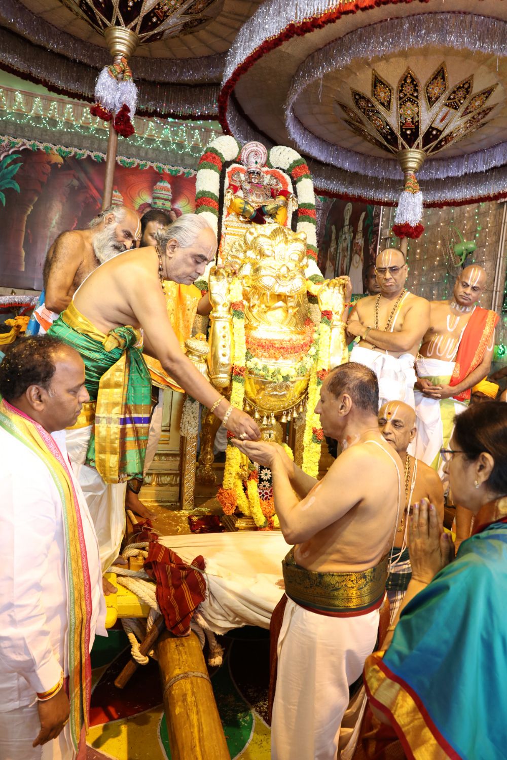 On the third day morning on Friday, the Lord is taken out in a procession on Simha Vahanam. Simha- the Lion is a symbol of royalty and power. Lord assumed the form of half man and half lion in his Narasimha Avathara.